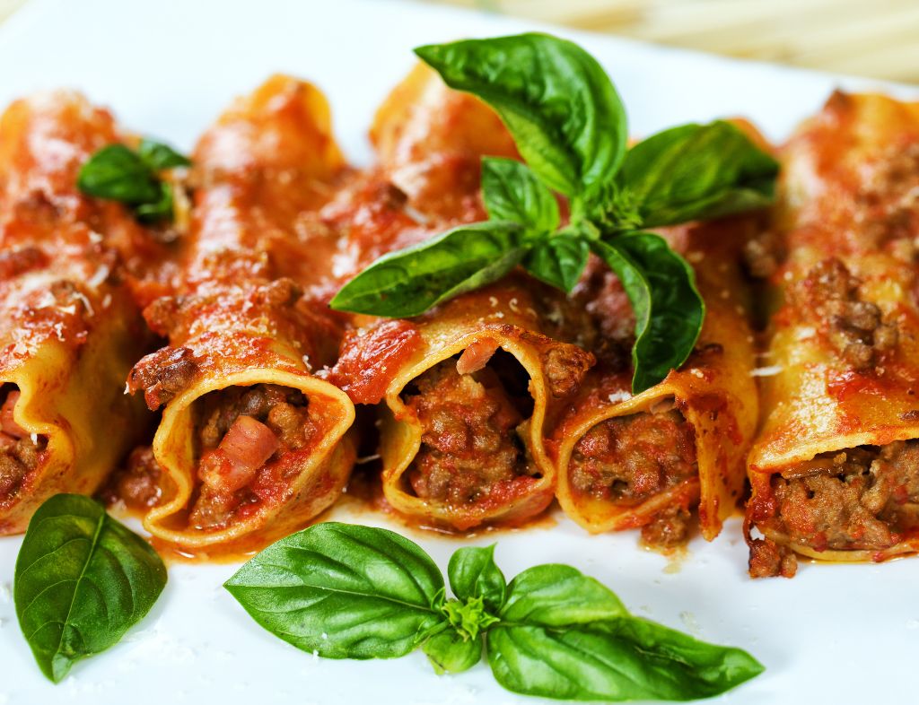 La versione classica all’italiana prevede un ripieno di carne mista, spinaci e ricotta, il tutto gratinato con besciamella e parmigiano. Sono un po’ più elaborati delle lasagne perché bisogna riempire ogni cannellone uno per uno, ma una volta fatto il lavoro, il risultato è spettacolare.